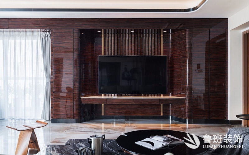 對稱式護墻板裝飾最多被應用在電視背景墻等處,兩邊對稱、相互呼應的特點,從而可以給人產生一種安全、靜謐和莊重之感。