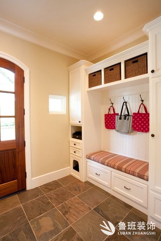設計可以通過造型區別來界定玄關位置,還能通過墻面處理方法和相鄰墻面差異來界定玄關位置,以地面材質、色澤或者高低差異來界定玄關位置。