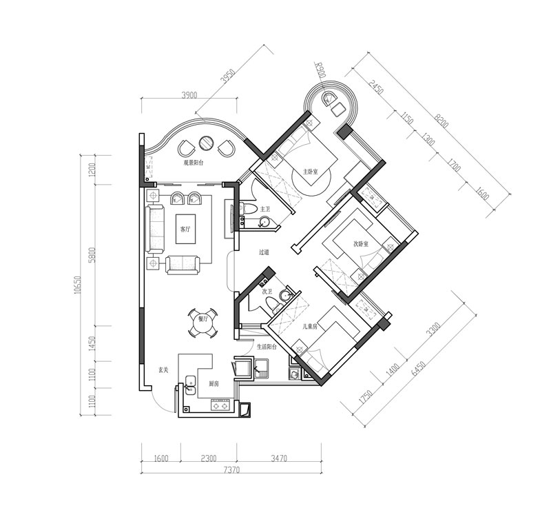 本案例是寰宇天下臨江戶型戶型,這個房子大部分時間主要是女主人自己居住,女主人是一位30幾歲事業小成的優雅氣質單身女性,偶爾母親會過來居住,廚房做了一個開放式處理,讓廚房空間得以延伸,且增加廚房互動空間,單獨的生活陽臺避免了占用景觀陽臺最佳觀景區的尷尬,讓無限江景盡收眼底,本案風格偏向于小法式輕奢,復合女主人的品味的想法