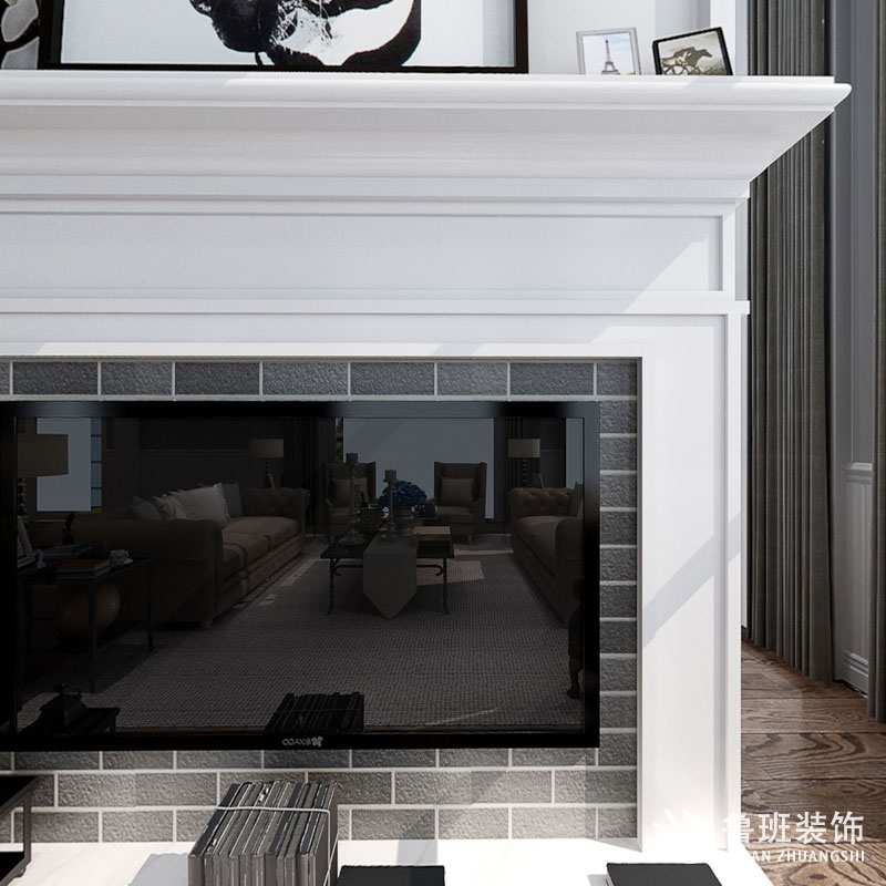 此案在分區保證了各個空間的相對的獨立性,客廳采用護墻板圍裙,墻面采用灰色給予冷暖搭配,頂面采用九宮格造型,選擇黃銅色燈及暖色燈光,摒棄了一些不必要的形體堆砌,盡量的呈現一種低調且具有一定文化內涵的新美式家居生活……